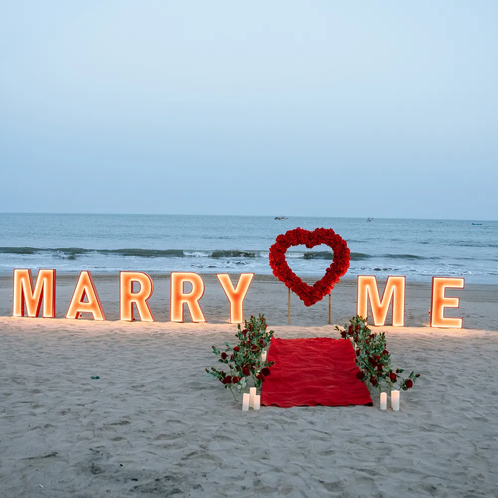 Pop the question with an unforgettable beachside setup, complete with romantic touches and a breathtaking backdrop.