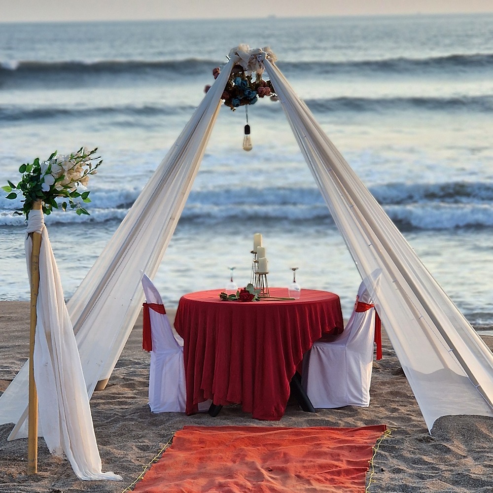 Let us help you plan the perfect beach experience that will stay in your heart forever. Imagine the soft glow of candlelight reflecting on the waves, the soothing sound of the ocean as your background music, and a beautifully decorated setup designed exclusively for you. Whether you’re celebrating love with a romantic dinner for two, planning the most memorable proposal under the stars, enjoying a cozy family gathering, or hosting a lively beach party with friends, we tailor every detail to match your vision. From exquisite dining and thoughtful décor to personalized touches that make your event unique, we ensure that your special moments by the sea are nothing short of magical.