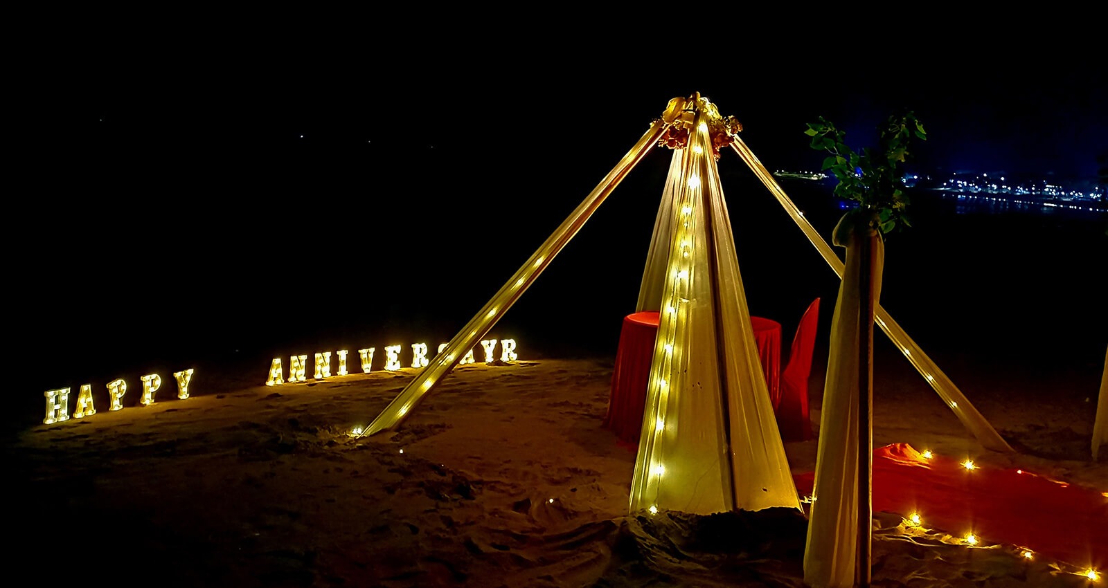 Mark special moments on Diu’s stunning beaches with personalized setups, creating memories in a magical, oceanfront setting.